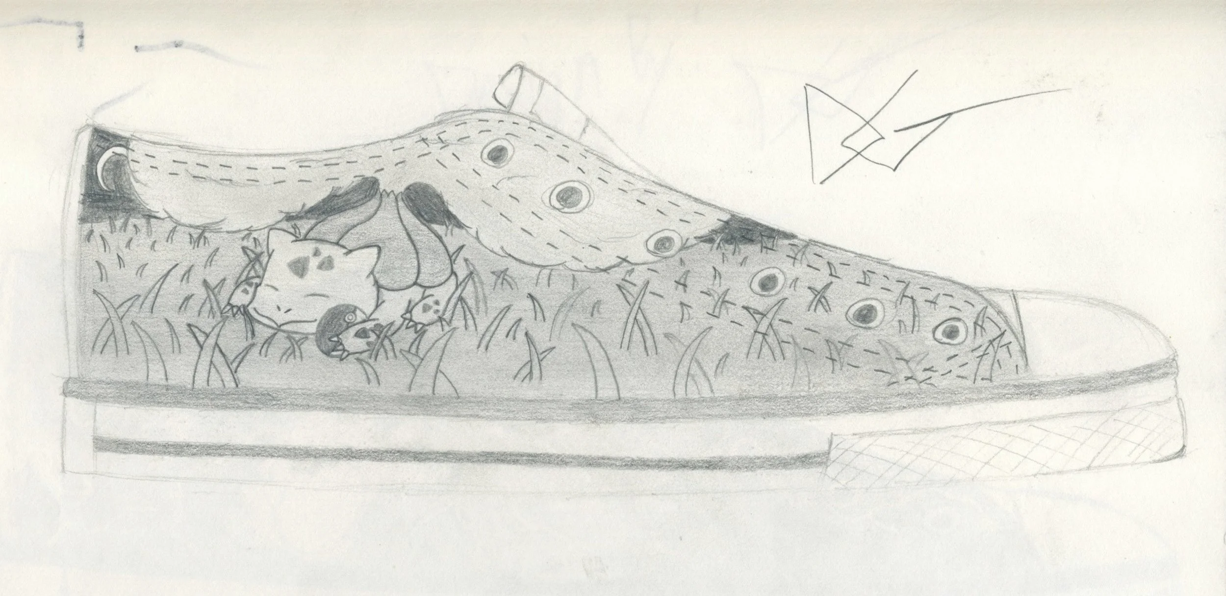 Random design of headphones on a worn out pair of Converse that I had sitting around.