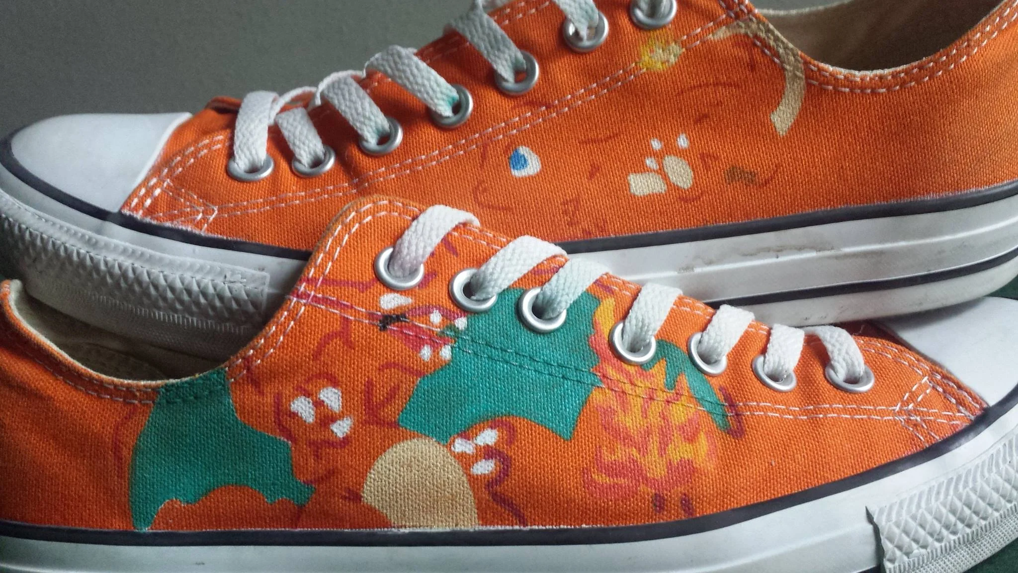 Pokemon Charmander and Charizard shoes painting on Converse in a minimalist style.
