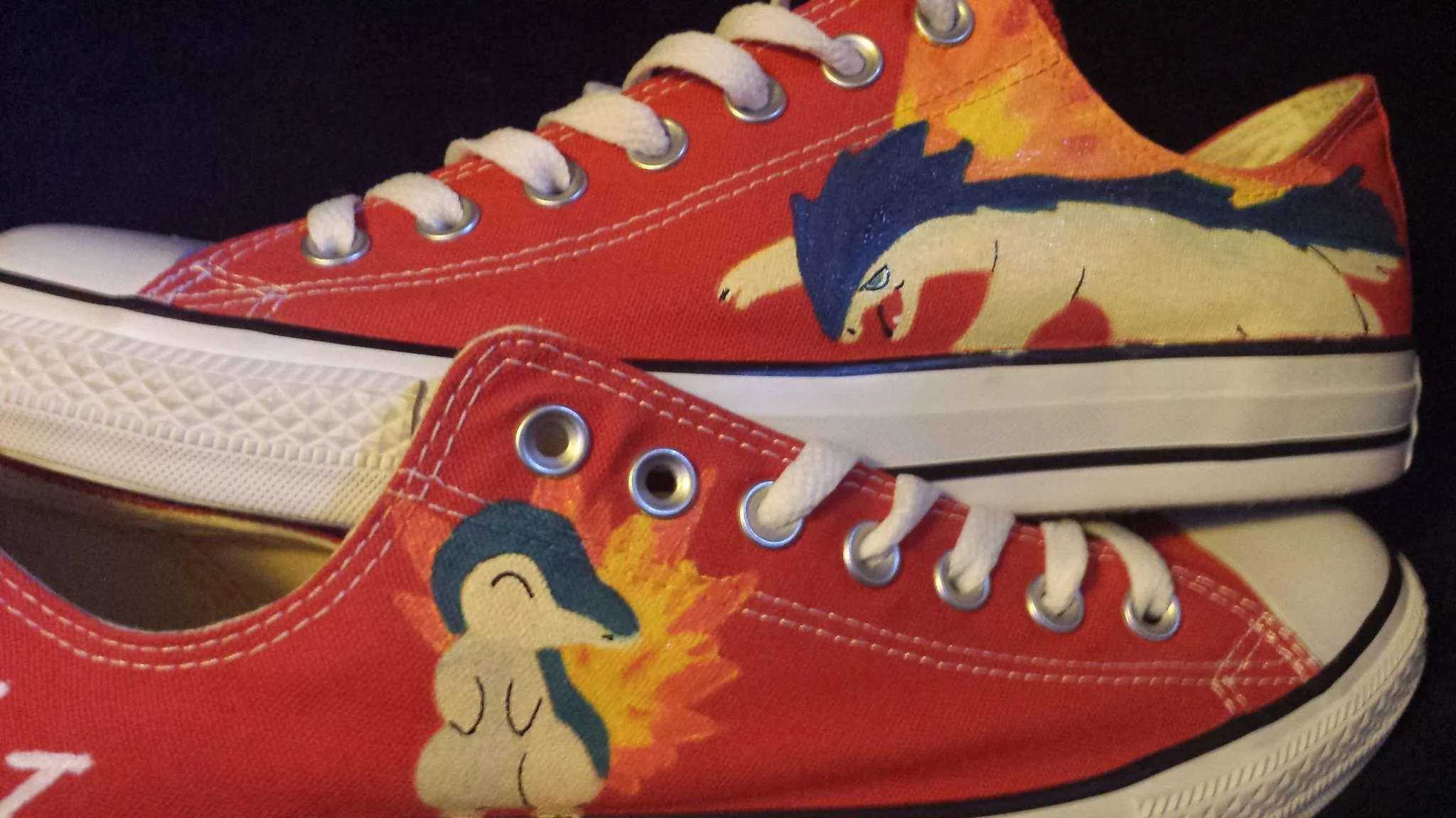 Converse shoe painted of Cyndaquil and Typhlosion for a friend.