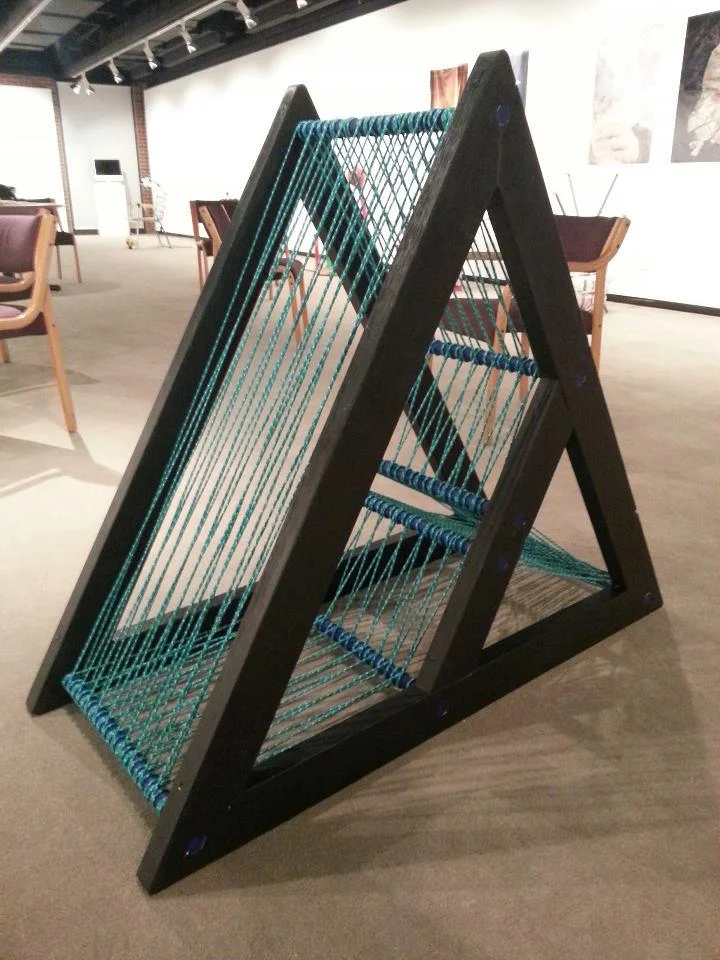 The concept was that each side of the chair would be usable in some sense. Due to budget restrictions, the full vision could not be met. But, the original idea was to have 3 different functioning “chairs” on each side of the sculpture. A classic chair, a beach like lounge chair, and a hammock on the long side.