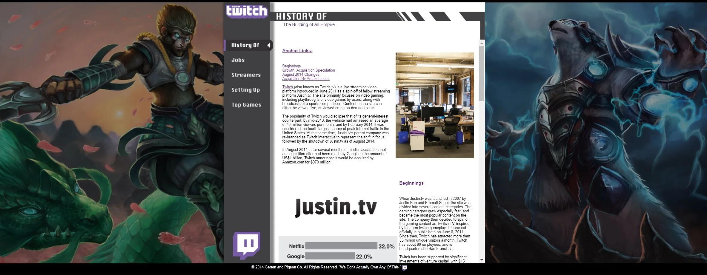 The site provided information about how Twitch came to be what it is today, as well as how to start setting up your own content on the website.